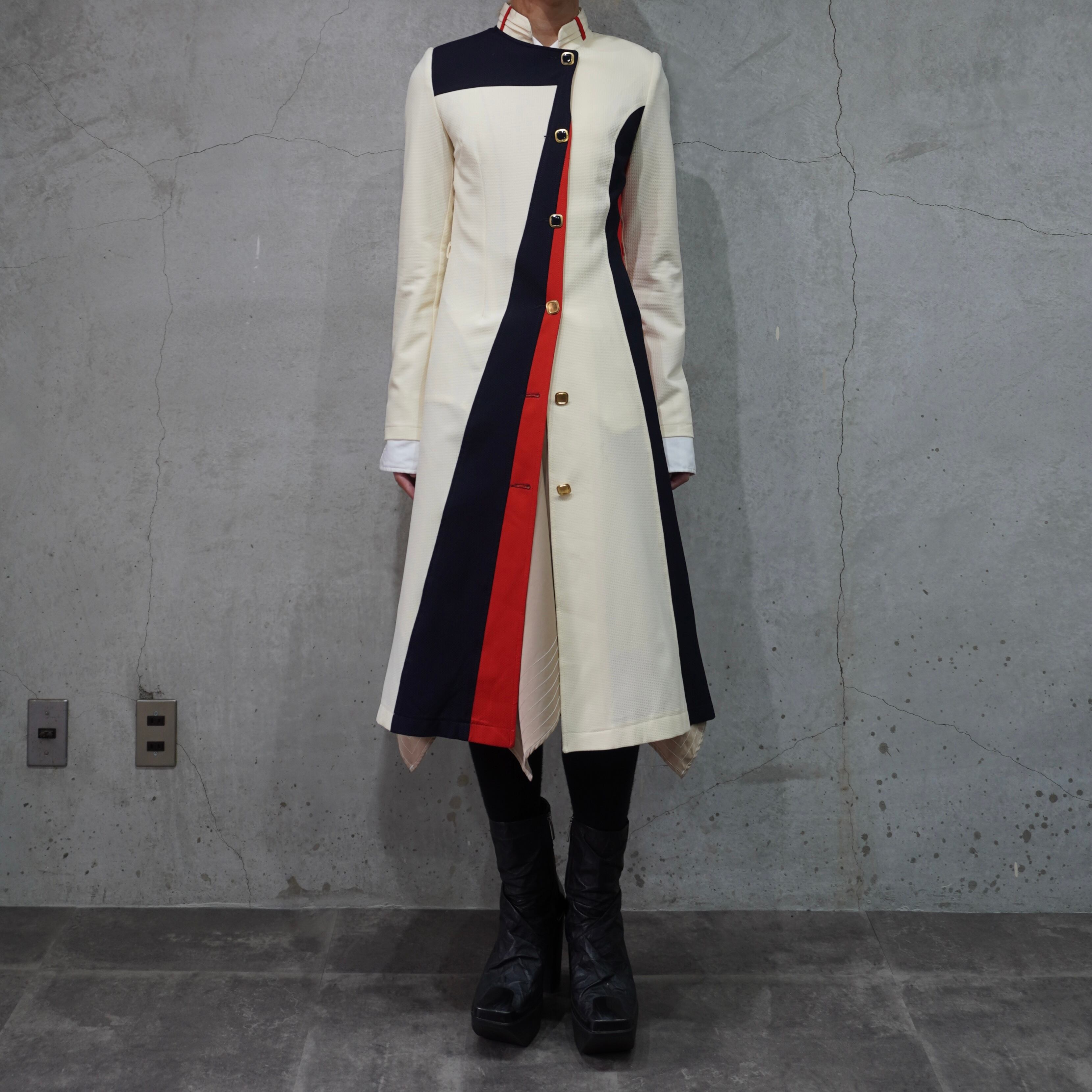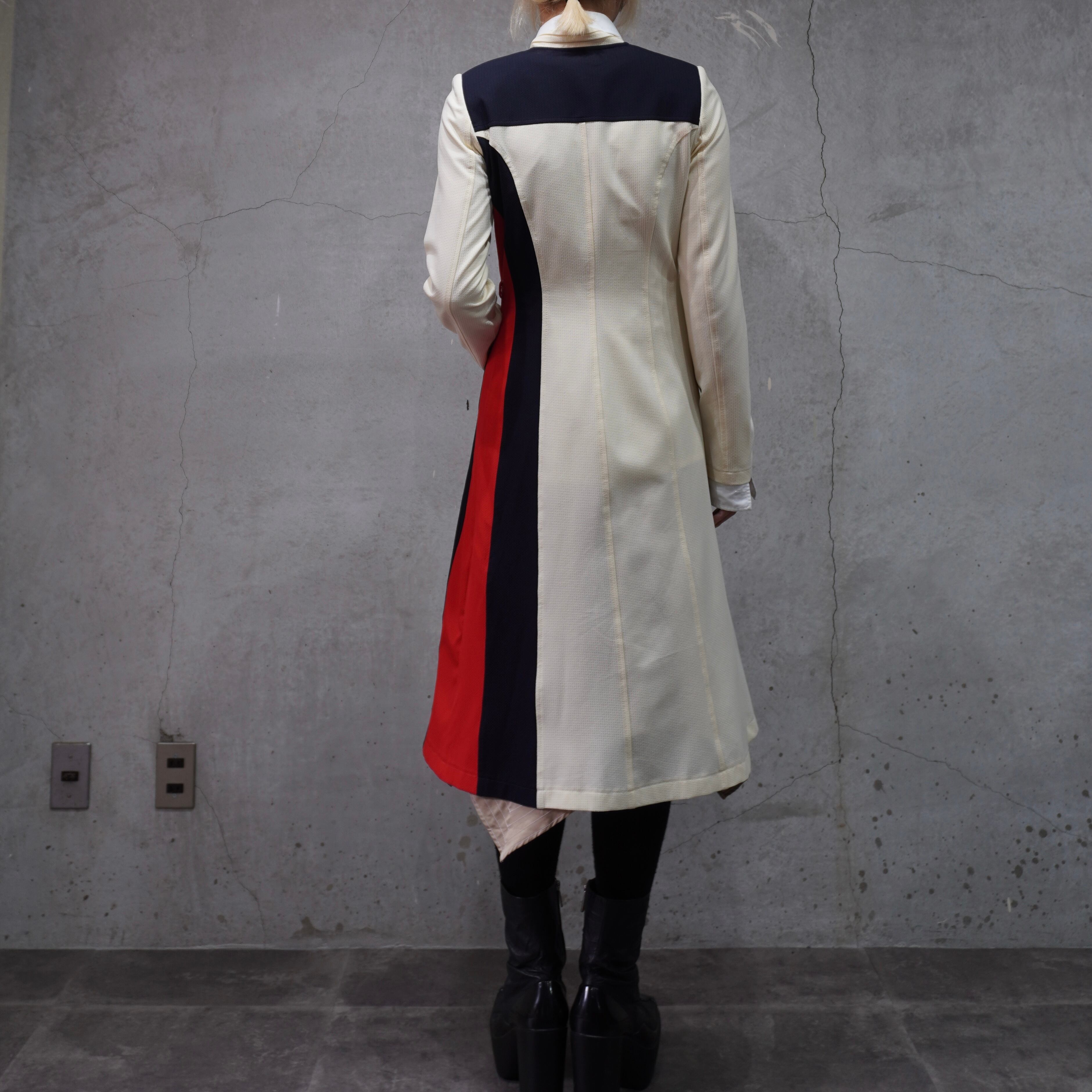 tricolore color asymmetry tight long coat