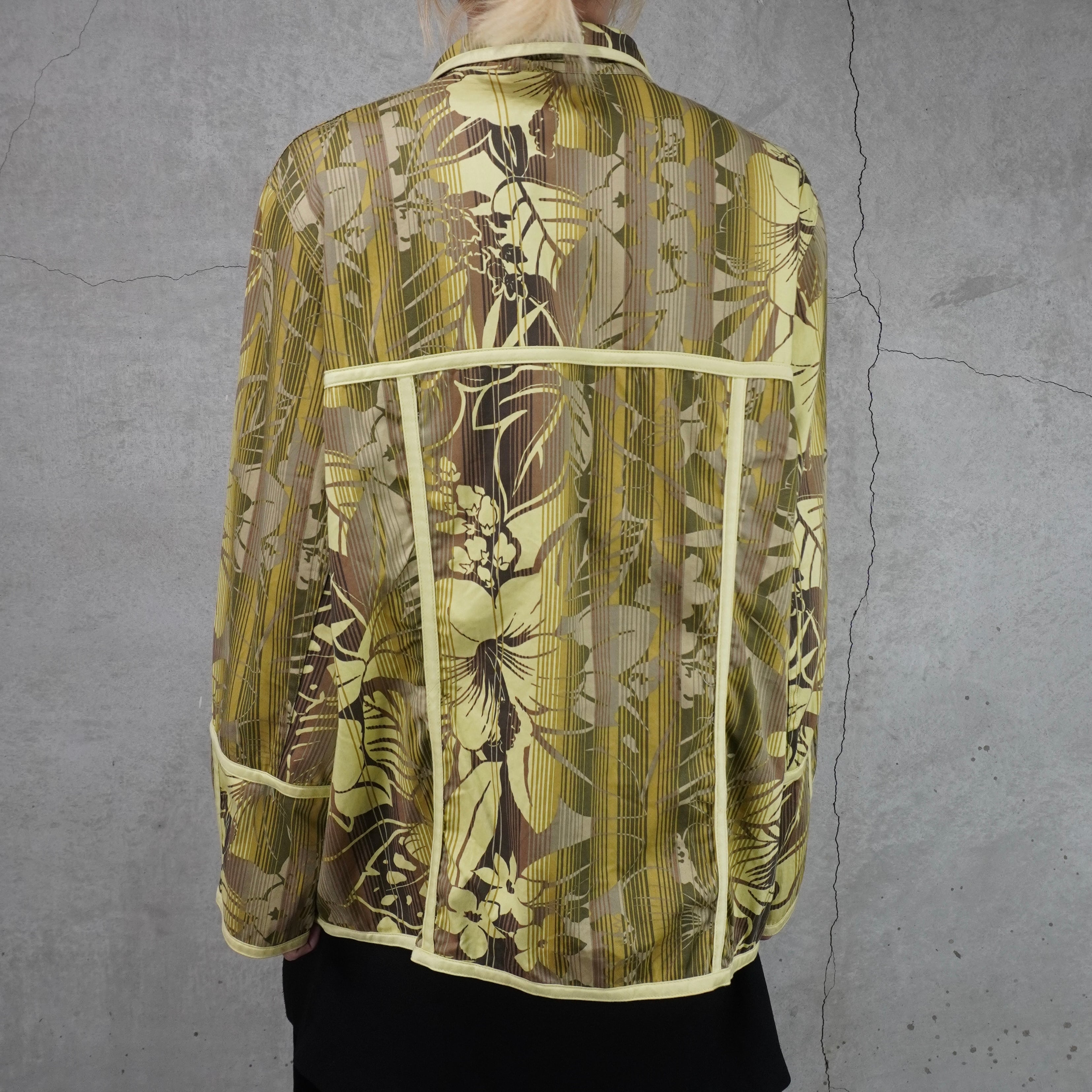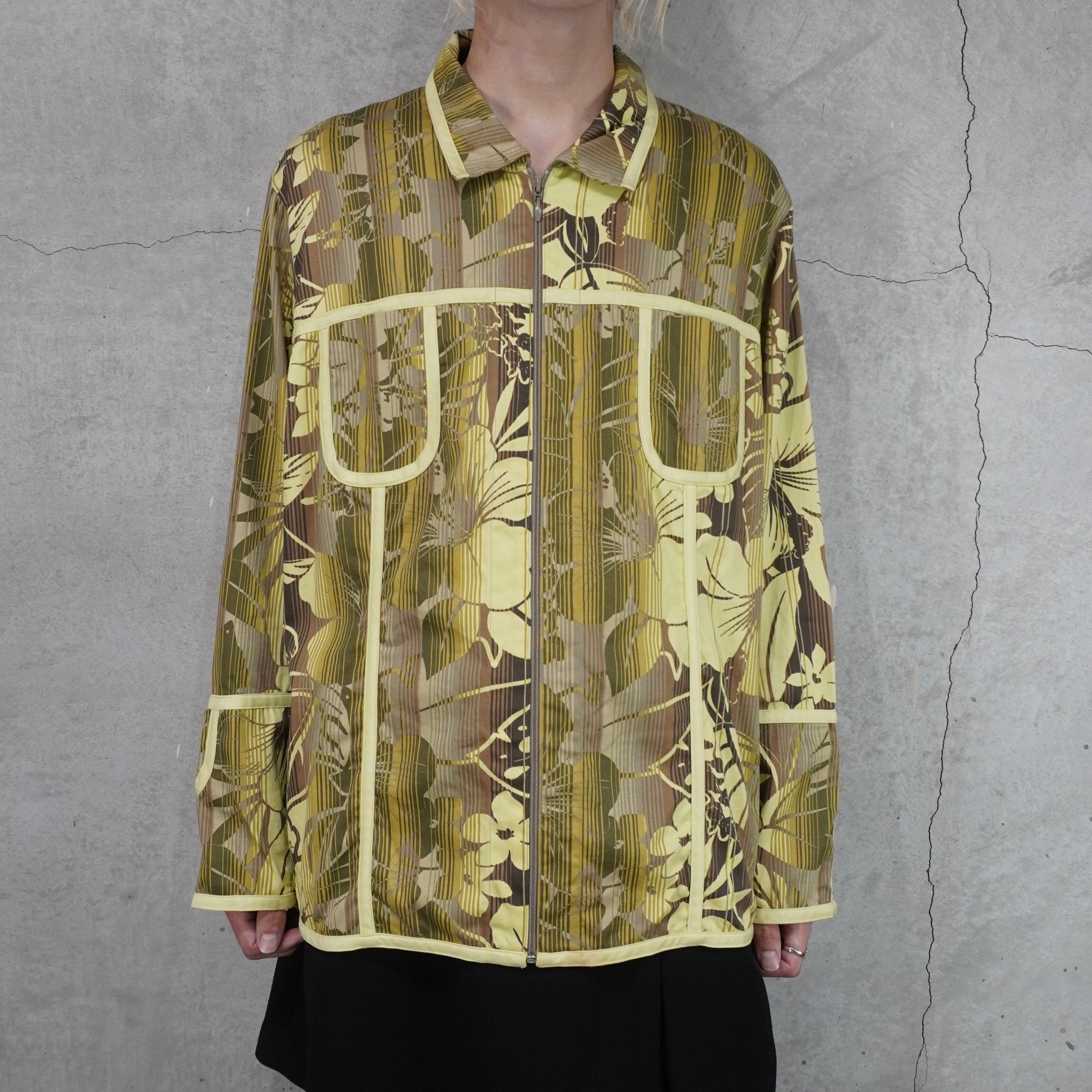 flower pattern piping design zip up jacket