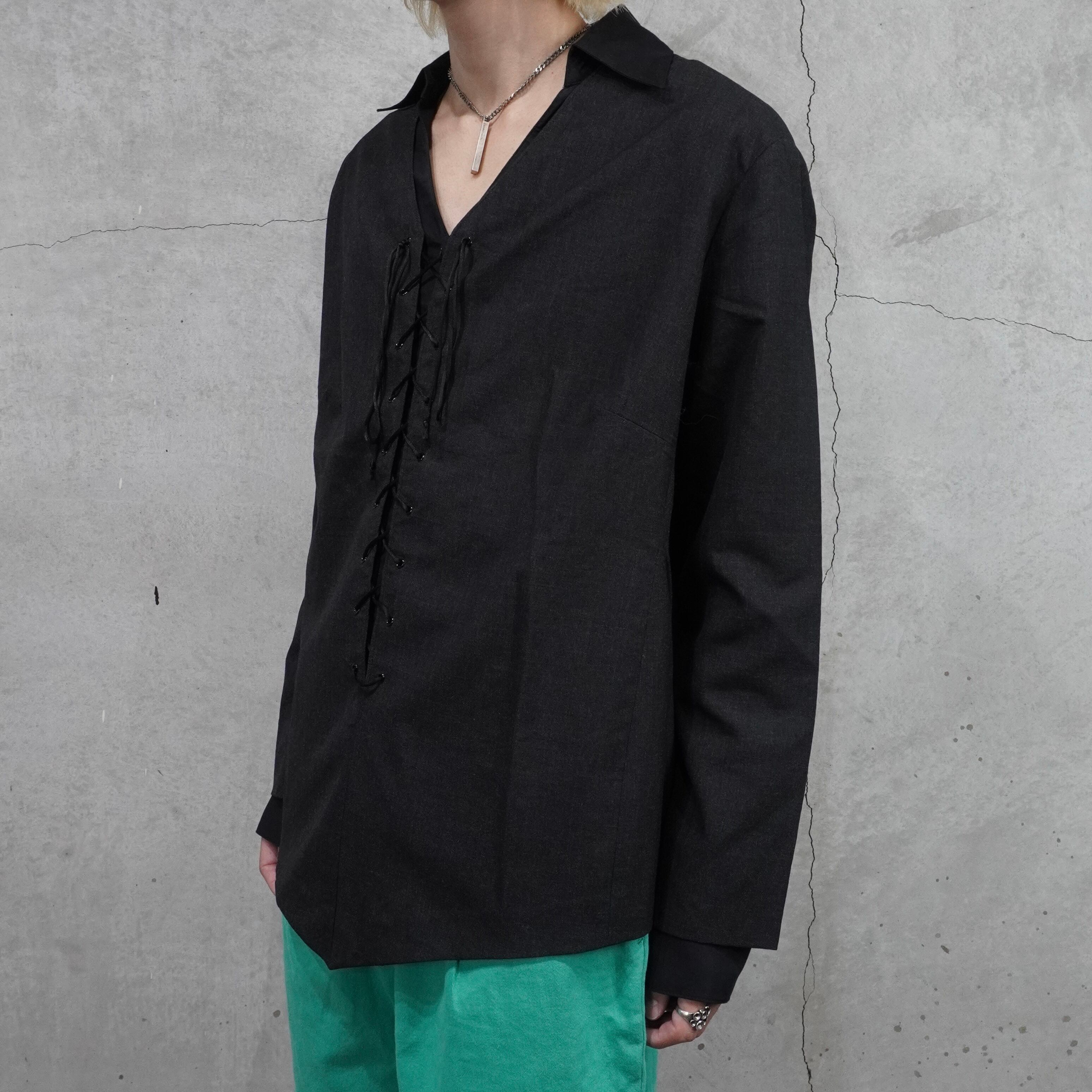 flare sleeve lace-up shirt