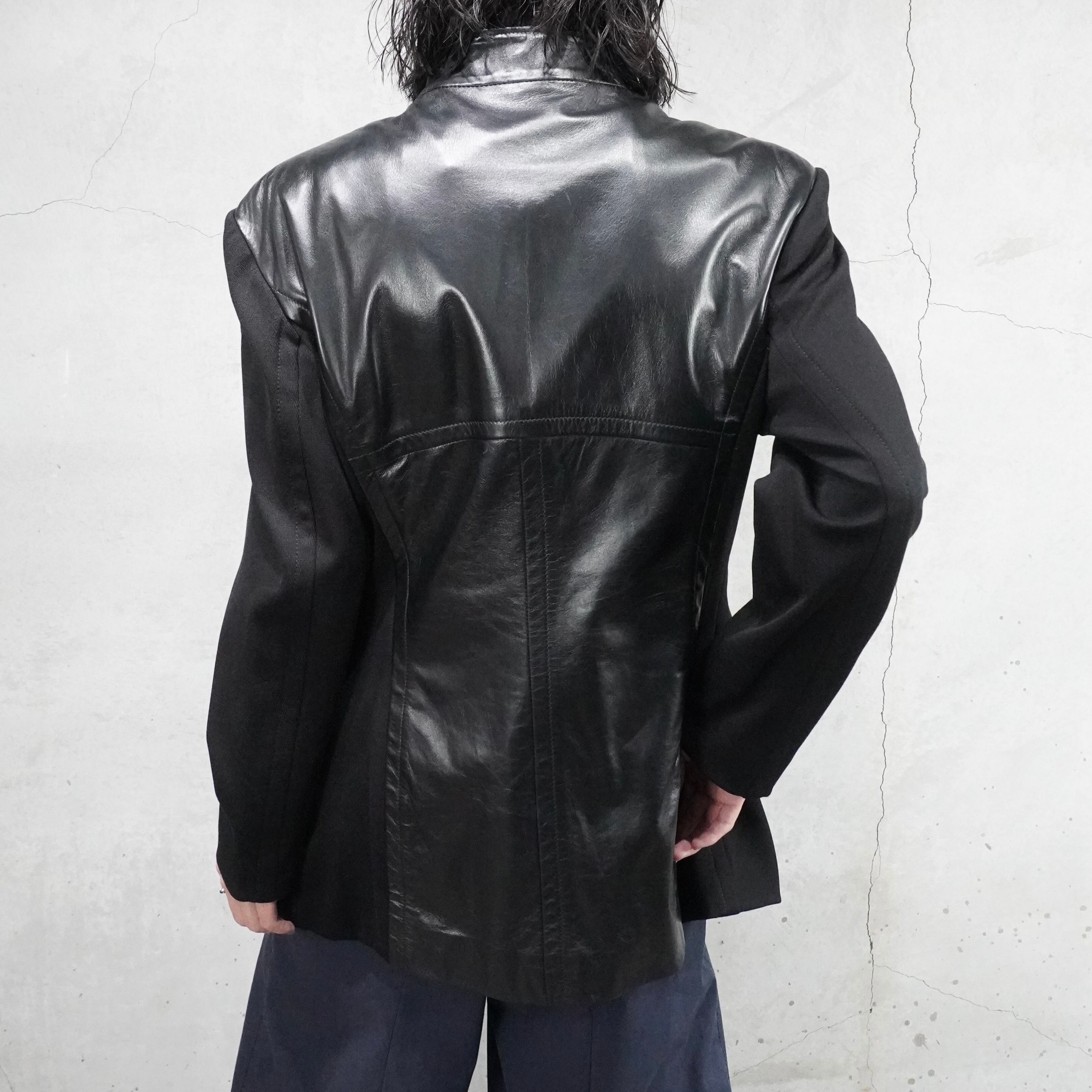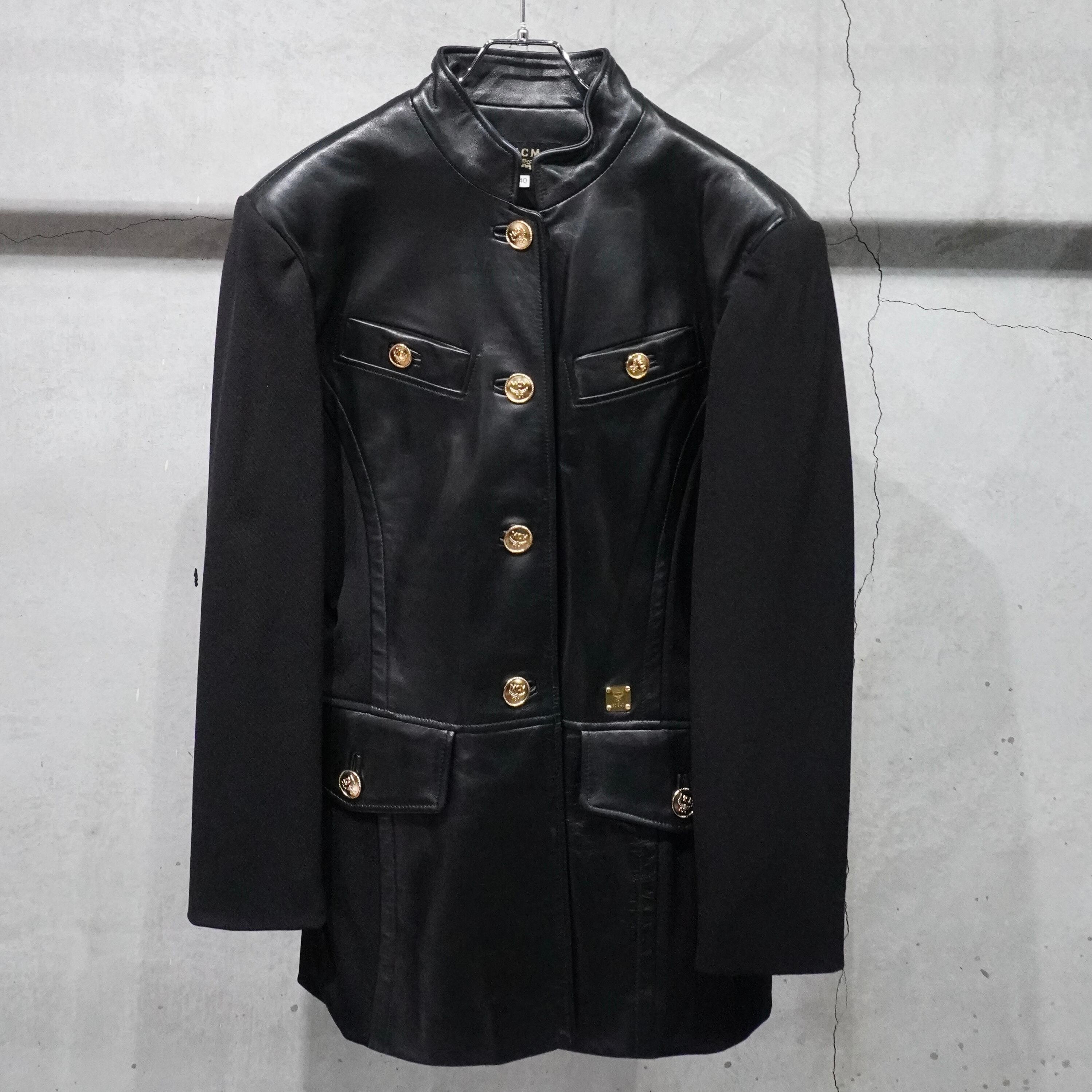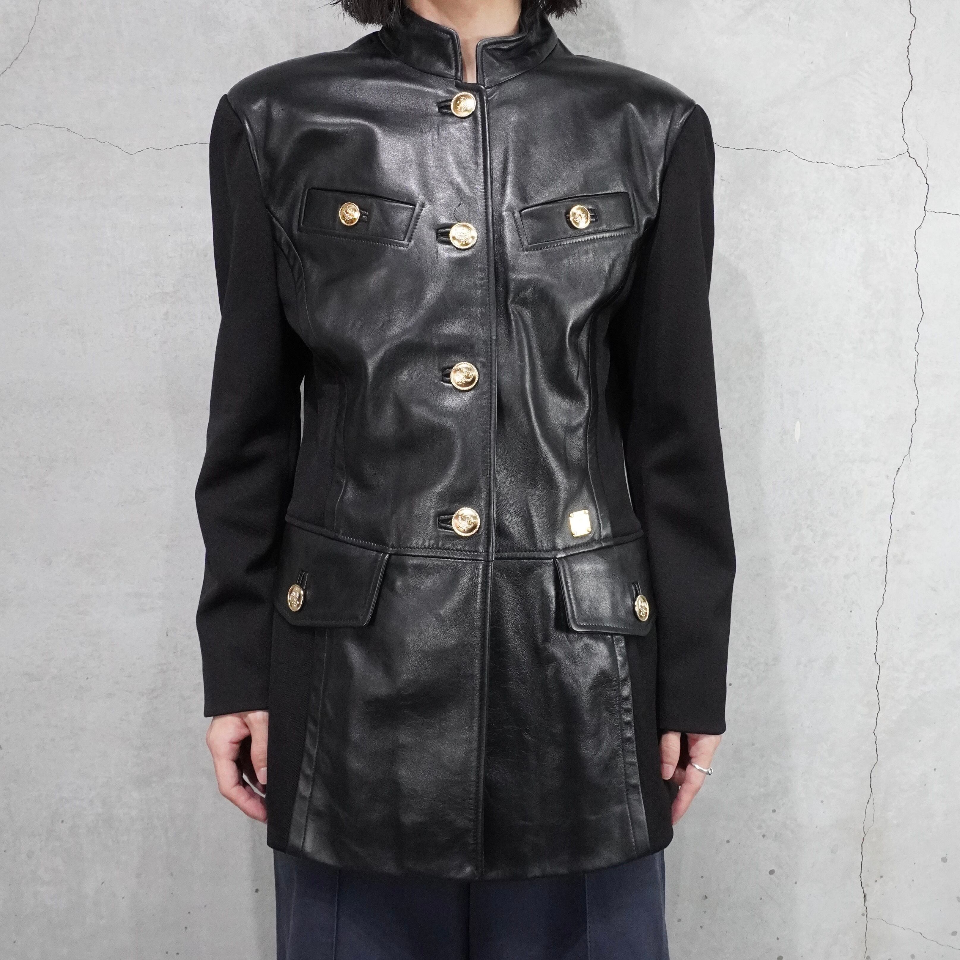 "MCM" 90's switchig leather mao collar jacket