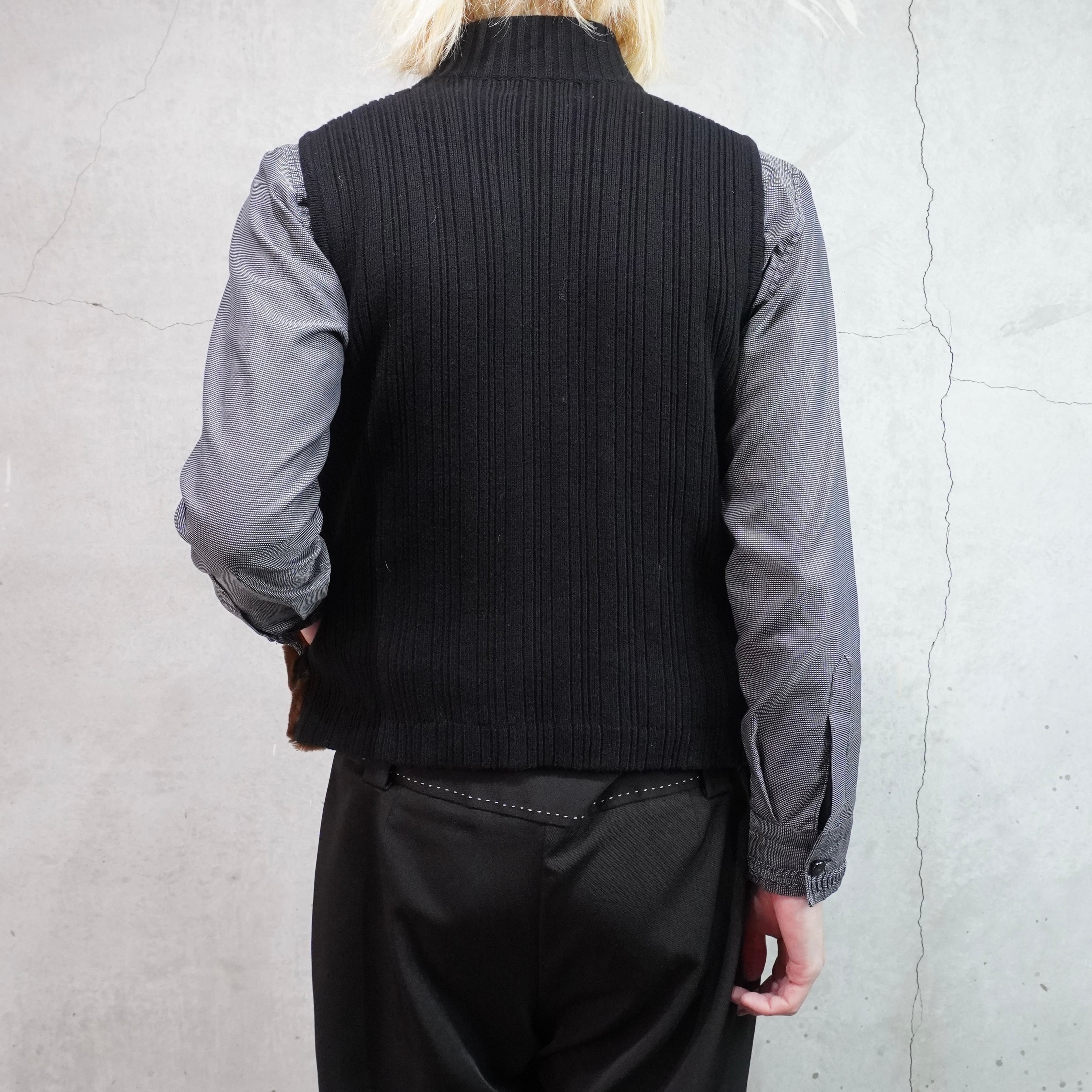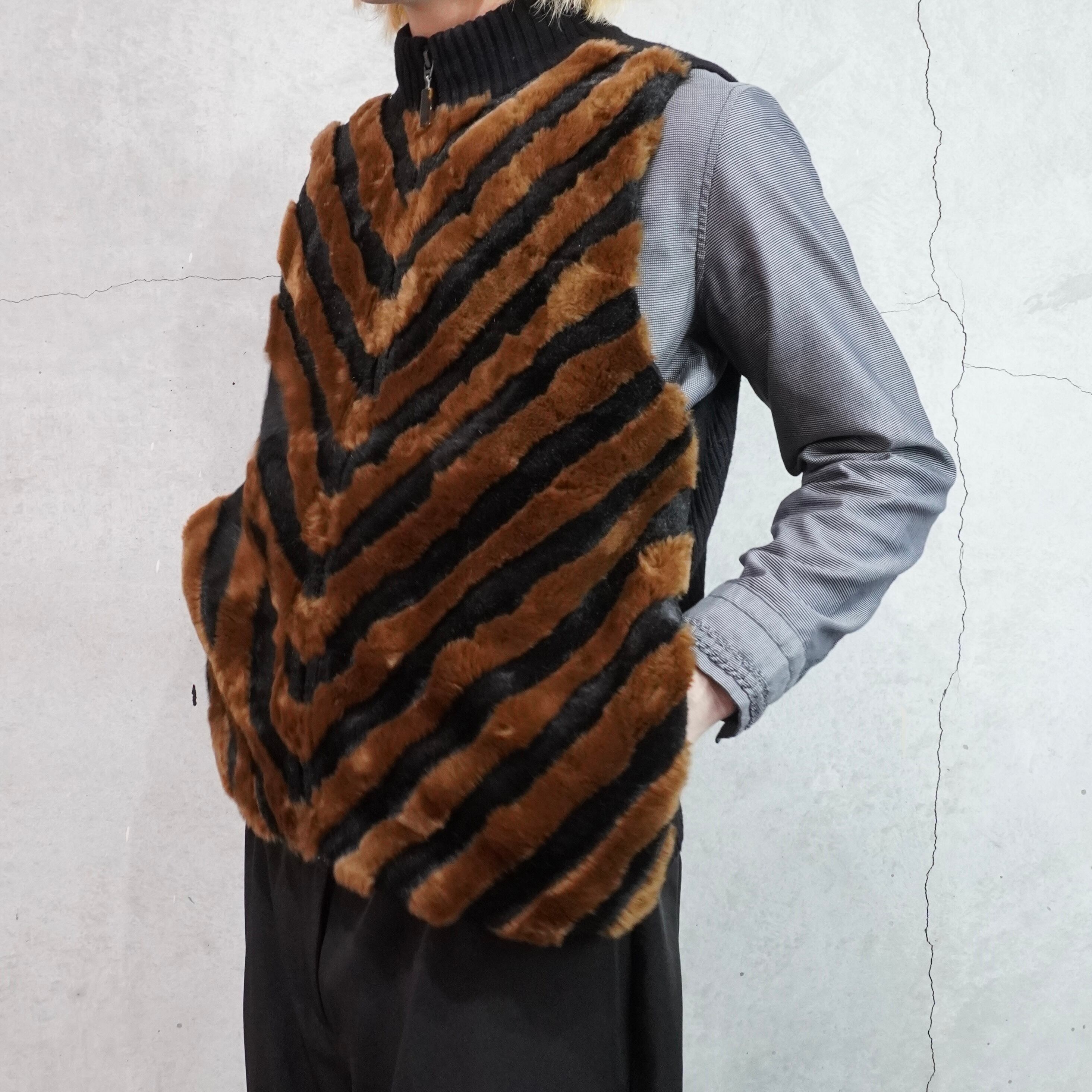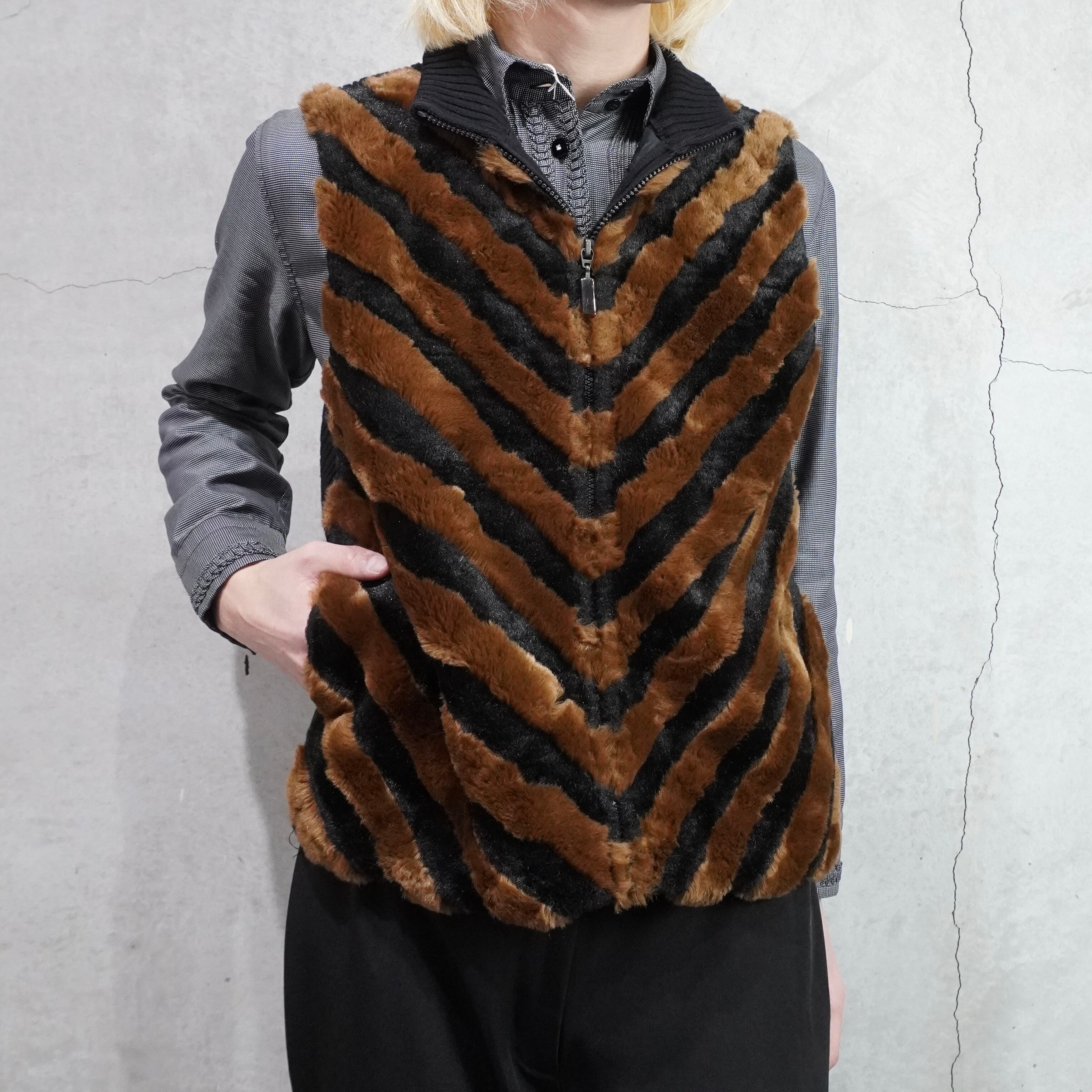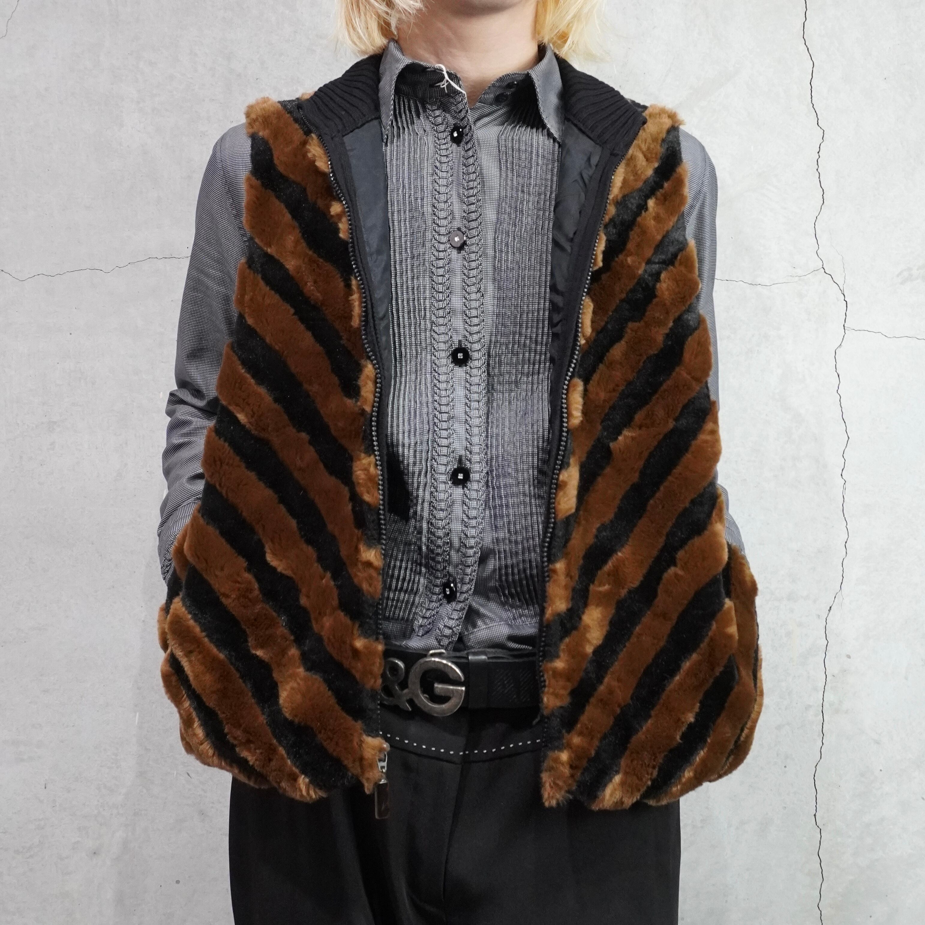 fake fur high neck zip up vest