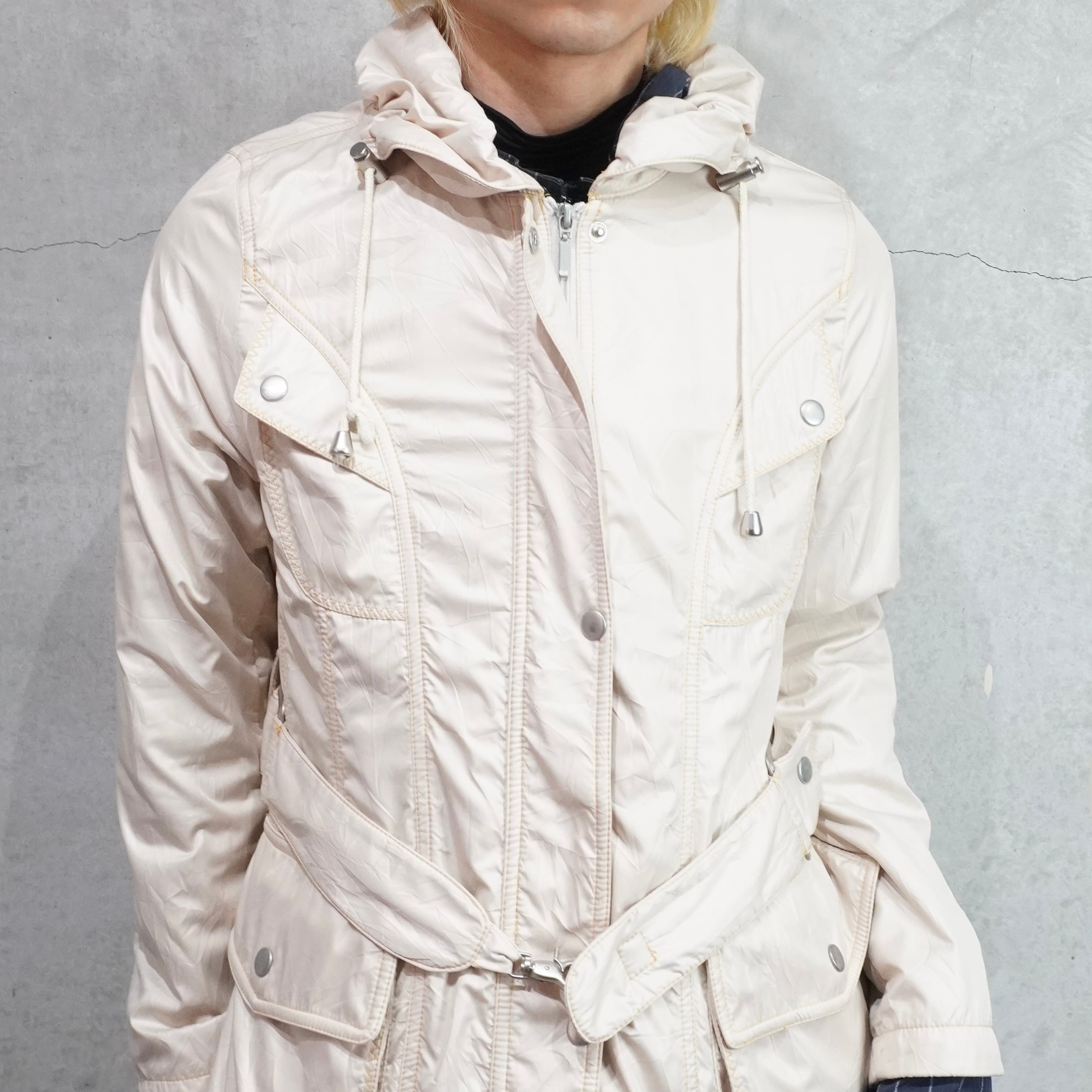 drawstring gimmick nylon middle coat