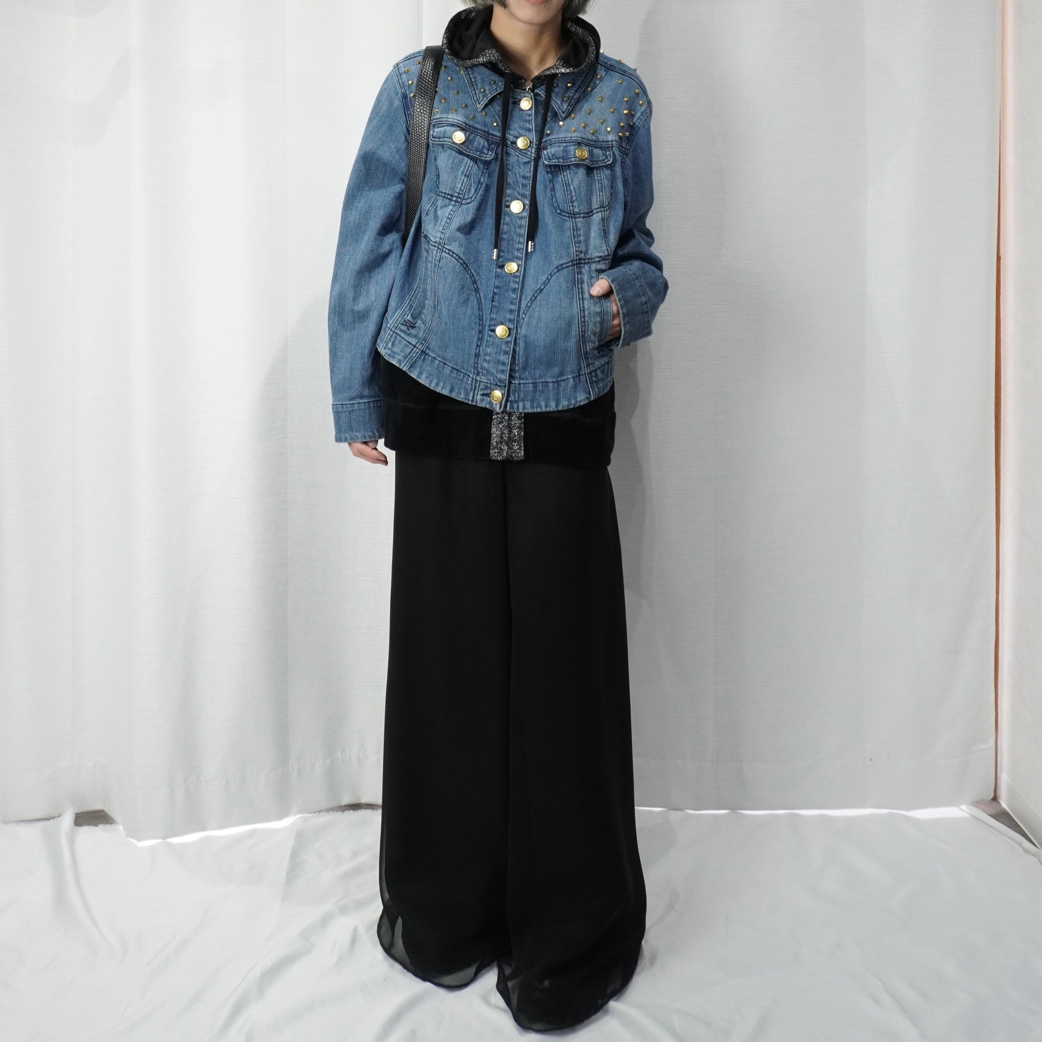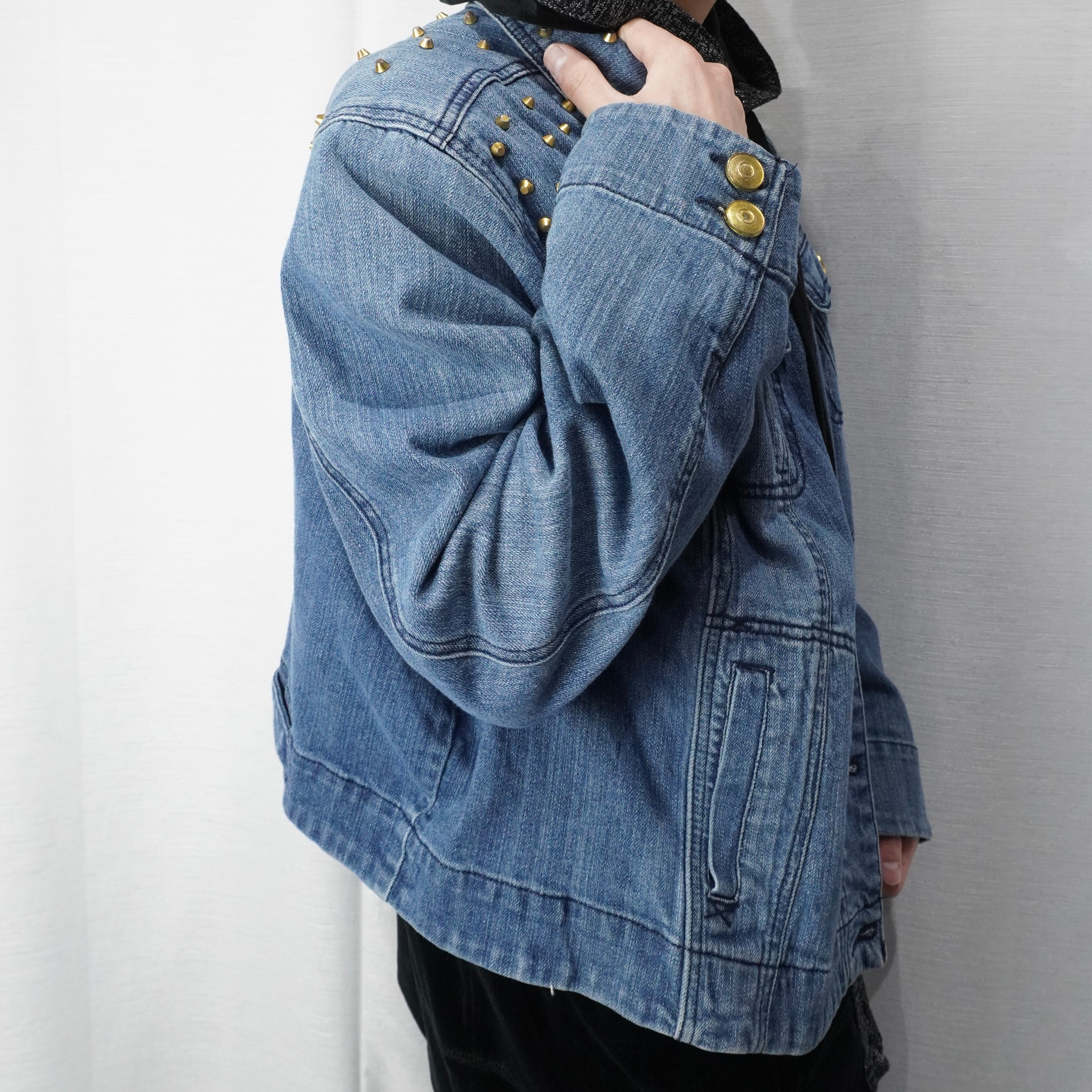 studs design short length denim jacket