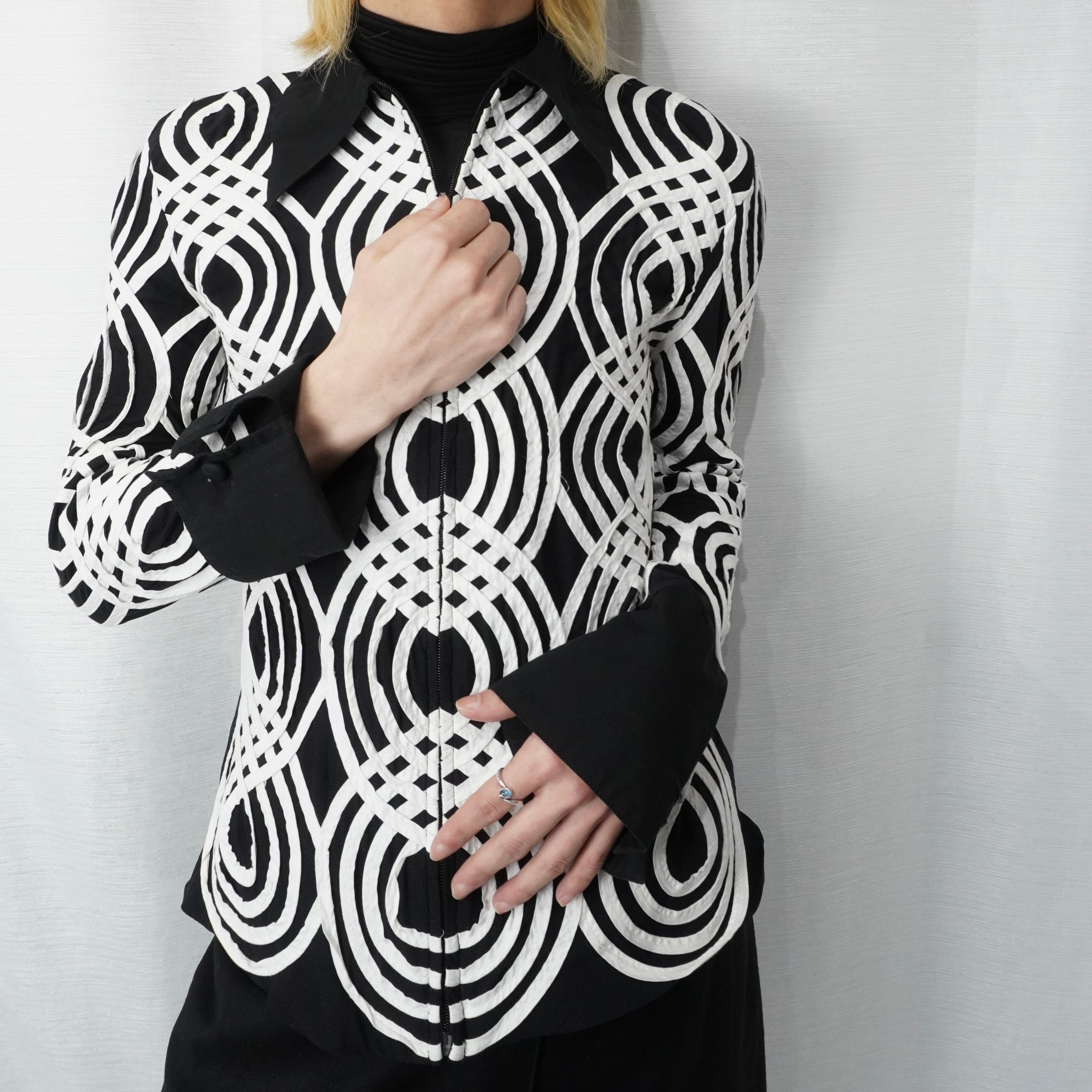 geometric pattern second skin zip shirt